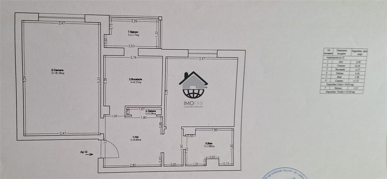 Apartament decomandat 50,00 mp utili + balcon 3 mp